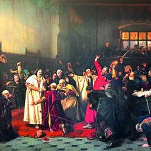 „Živ buď, Jiří, králi Čechů,“ rozlehne se zpod oken Staroměstské radnice v Praze. Lidé se totiž dozvěděli, že sněm zvolil za nového českého panovníka Jiřího z Poděbrad (1420–1471). Ten si ke koruně údajně dopomohl zastrašováním jednotlivých volitelů i jejich uplácením.