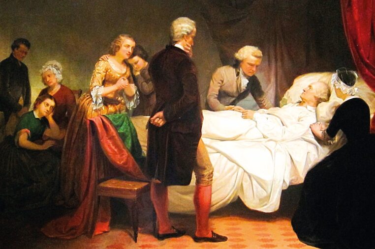 Přivolaní lékaři jsou bezradní. Jejich odborná pomoc se omezuje na pouštění žilou, ale to Washingtonův zdravotní stav ještě zhorší. Už je večer, když vtom se Washington obrátí na svého osobního tajemníka a pronese: „Odcházím.