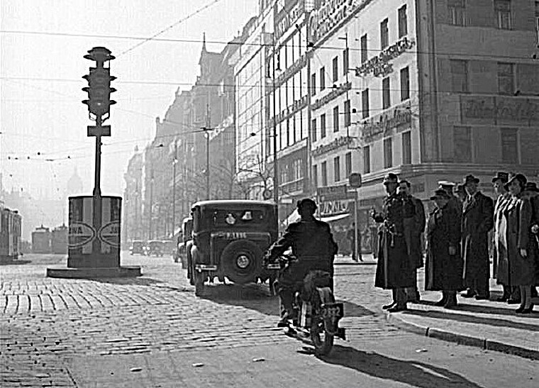 Svůj první semafor získává Praha. Vyrobili ho v ČKD a postavili do blízkosti dnešního Masarykova nádraží. K obsluze opět potřebuje strážníka. Ten v některých případech používá i píšťalku, aby účastníky provozu upozornil na blížící se změnu na semaforu.