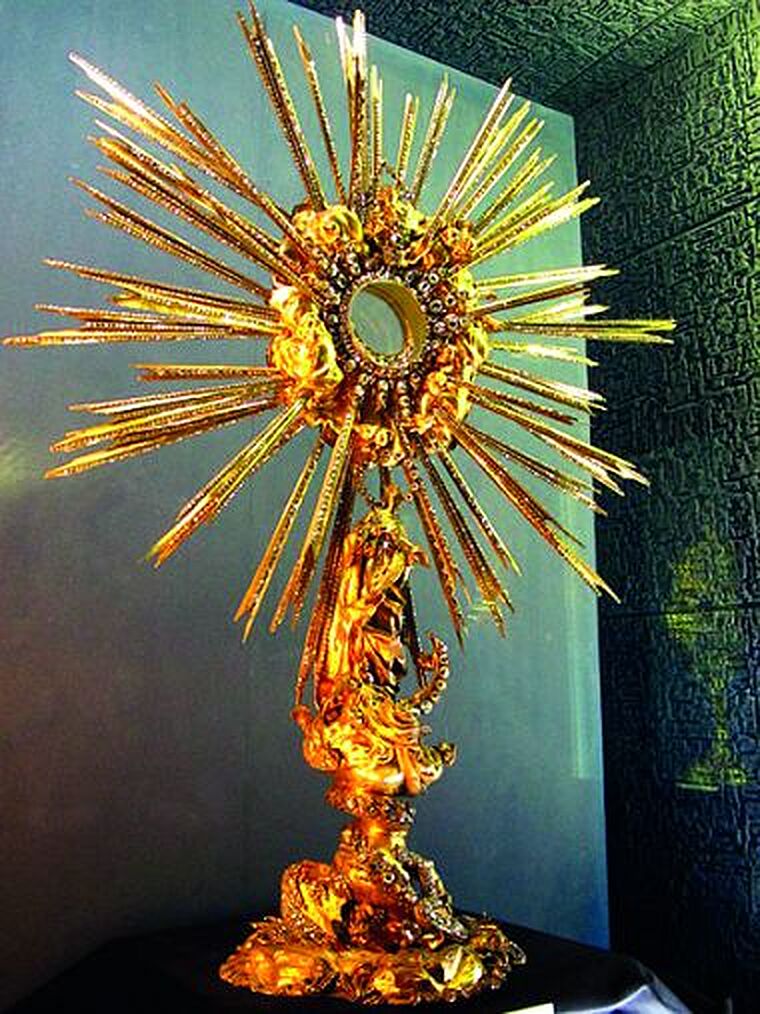 Proslulé barokní dílo je totiž vyhotoveno na zakázku pro pražskou Loretu. Liturgický předmět z ryzího zlata, posázený více než 6000 diamanty, je tak cenný, že ho při převozu z Vídně doprovází ozbrojená eskorta vojáků.