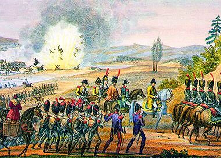Francouzští vojáci opouštějí pod rouškou tmy bojiště. Bitva u Lipska pro ně končí prohrou. Císař Napoleon (1769–1821) se pokouší velkou část své armády zachránit před totální zkázou nočním ústupem přes řeku Elster. Most, po němž však vojáci rázují, předčasně vybuchne a řadu z nich zabije.